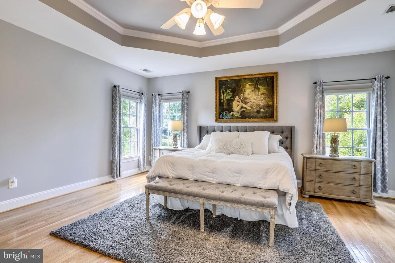 Backyard Beautiful and a Designer's Delight. Gorgeous NV Monticello Model with 3 finished levels for a total of over 7,000 square feet. Huge gourmet Kitchen has Viking and Sub Zero appliances and there are wonderful updates throughout. At a time when backyards mean so much, this home has the perfect large, flat and fenced backyard which is professionally landscaped for privacy. Every bedroom has its own bath and hardwood floors. Elegant Master Suite with fireplace and sitting room has a 2 built in closets "to die for". In fact, the every bedroom closet has been enhanced with closet systems. Entertain in style on the upper level or have casual gatherings around the Bar and Rec Room with fireplace on the lower level with 5th bedroom suite. Check out the Video, Tour and Floor Plan. Be prepared to be wowed.